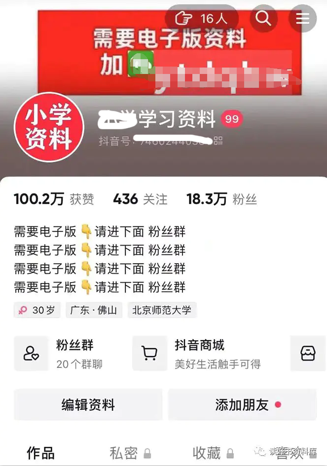 大家好,下面这个是我运营的小学教辅资料的账号,如果关注这个赛道的,相信都有刷到过我的视频或者关注过我的账号的。