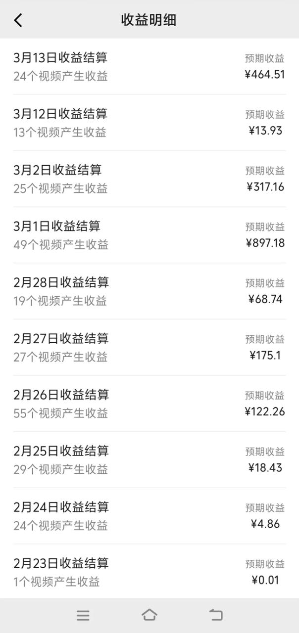 恰好40-65岁的人群在这里占据80%,而情绪的共情也是当下她们的需求之一。咱们作品刚好就是日常生过中的种种情感共鸣文案,条条作品5万+。而且作品越多流量越大厚积薄发,半个月每天收入稳定300+。